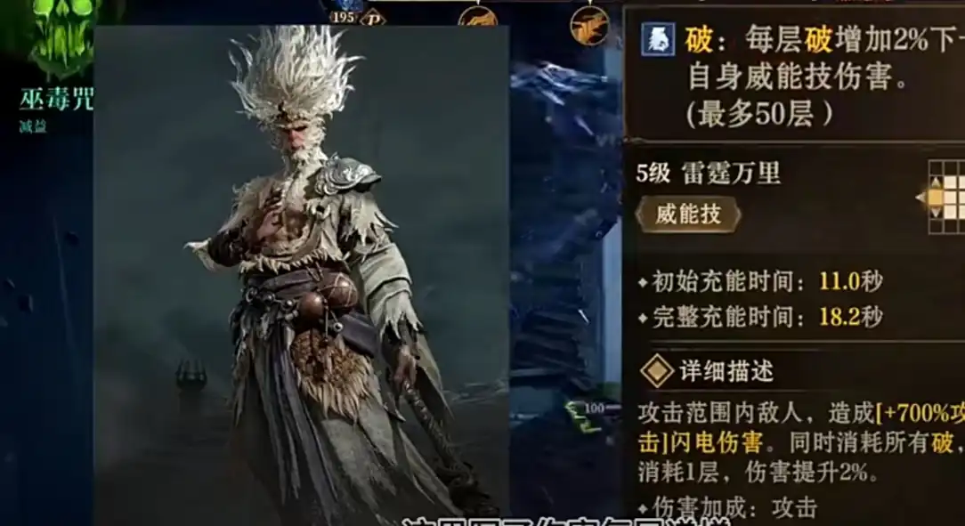 威能技可以造成700%攻击的范围伤害,猴哥的威能技有一点可能会让玩家产生无法理解的情况,在它的威能技中标注有伤害每层递增,可是下面紧接着有写了消耗,可能很多玩家就会把这点给理解成为伤害加了2次,可实际上只加了1次。