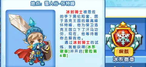 冰系徽章:在雪人谷的怀特冰川,玩家将挑战冰封骑士。这是一位实力强大的NPC,但只要玩家掌握合适的战术和宠物搭配,击败他并非难事。成功击败冰封骑士后,冰系徽章将归玩家所有。