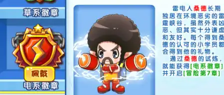 电系徽章:先去雷霆峡谷的雷雨走廊,这里有一个机关需要开启,然后进入雷霆深渊的核心。在这里,玩家将面临雷电人桑德的挑战。击败桑德后,电系徽章将成为玩家的奖励。记得在挑战前做好充分准备,提升宠物实力和技能等级。