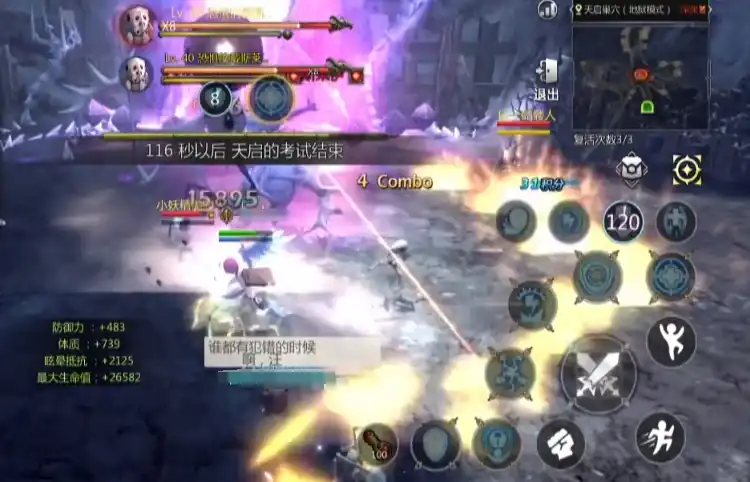 在boss的技能方面,触手前插的伤害不是很高,但是释放时天启肩膀会左右摇晃,作为贤者的职业,到时候可通过侧滑加悬落躲避,其他职业则是要注意观察了,及时闪避即可。
