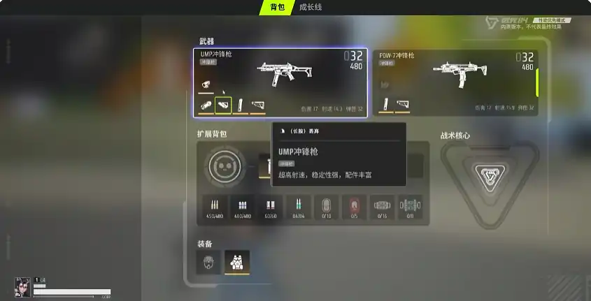 UMP冲锋枪:后坐力小,好压枪,适合刚踏入撕裂地的逐光者们,并且可装配较多配件,在移动中保持连续射击,能充分利用这支枪械低后坐力的特点。