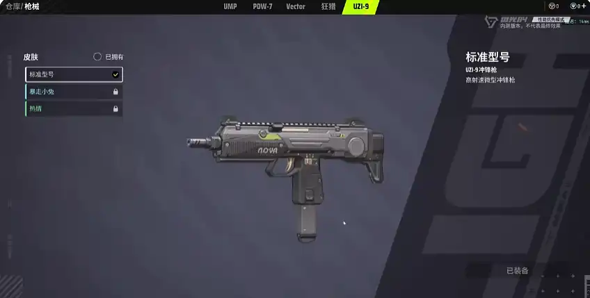 UZI-9冲锋枪:是该类型中的经典武器,射速快,DPS较高,后坐力偏小,适合在近距离快速消灭敌人;最好是在开镜状态下使用,并且缩短交战距离,以发挥最大火力。