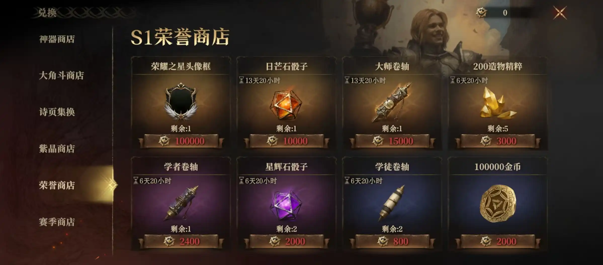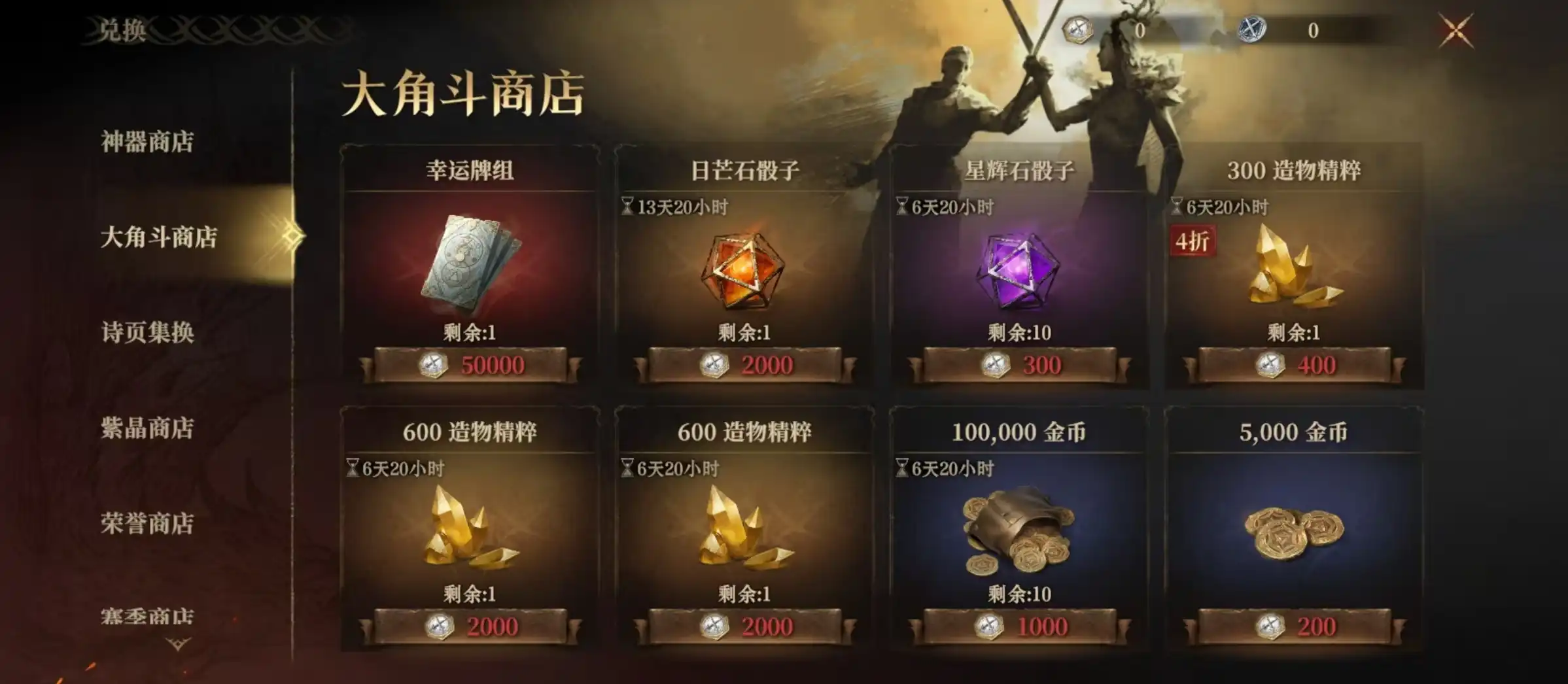 骰子是大家召唤流程的必需品,只有收集足够的骰子,才能在召唤塔中获得英雄,召唤骰子分为日芒石骰子和星辉石骰子这两种。当然使用途径也是不一样的,日芒石骰子更为稀有,它具有强大魔力,可以用来召唤更高稀有度英雄。星辉石骰子就比较低一些,只能召唤普通的英雄。日常获得这两种骰子的主要途径就是通过商店购买。首先来到大角斗商店,这里就有两种骰子出售,所需要消耗的道具是角斗场印章,只要玩家在大角斗场中获胜就可以获得纪念章。