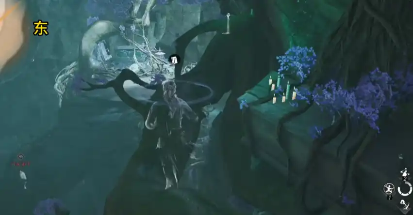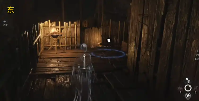 来到“雾隐之林”,跳到房顶,在房子的后面有一个宝箱。从一间房间的楼梯下到底层,解决掉沿途的敌人并获取宝箱。爬上一处藤蔓,在上面可以拿到开封东郊的宝箱。进到关底,沿着右侧的树枝走到尽头就可以看到偷师点了。