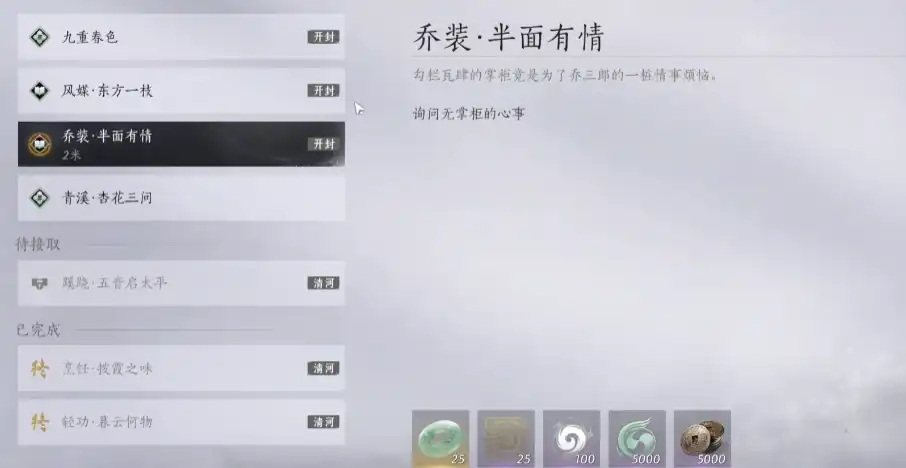 需要完成“乔装·半面有情”这个探游任务,与NPC“妆无艳”对话,将画眉等级升到2级,只要做2个乔装任务就好。随后来到开封“来苏蒙学”的传送点,过来后看向东边方向,找到NPC“路有七”对话,被拦住了,然后与反方向的神秘老者对话。随后偷听在摊位前的小糊涂,再去找艳无妆进行伪装,再回到先前的位置顺利潜入。去找“天裁”索要令牌,并收集一些宝箱,随后去找到练功场和NPC杨力互动,去找天长老领镖,在回到偷师点顺利偷师。