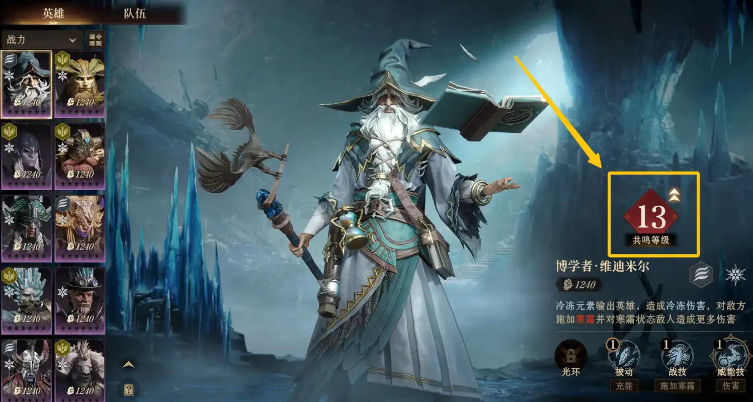 英雄养成分为共鸣等级、装备和天赋等,共鸣等级由所有英雄共享,可以通过过主线或者消耗经验药水的方式进行提升,升级能增强英雄的基础属性,并且在突破一定等级后才能解锁出更多的装备槽位和天赋功能,装备分为六个部分,分别是头盔、武器、衣服、手套、正位符文和负位符文,为穿戴者提供战力加成,共鸣等级到50级后解锁天赋,每一位英雄的天赋等级都是各自独立的,装备和天赋这两块建议优先给予团队的主要输出位。
