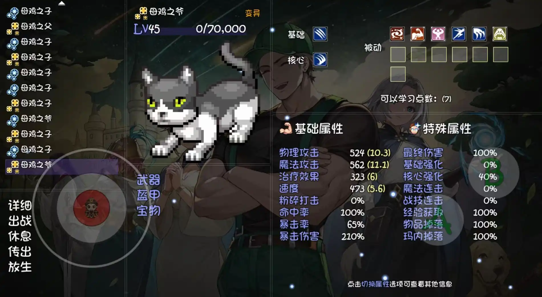 这就意味着只要继承一只速度不错的宠物,在自由档通关5层领取之后,全程战斗只需要看着宠物秒怪就可以了。宠物的基础属性跟上一个档通关时是一样的,但等级会从二十重新开始升,意味着可以再次的成长到55级,所以属性成长也非常关键,比较推荐攻击和速度成长在10左右是比较好的。但总体来说依然是格子数占据了绝对的优势,所以大家优先选择格子多的。