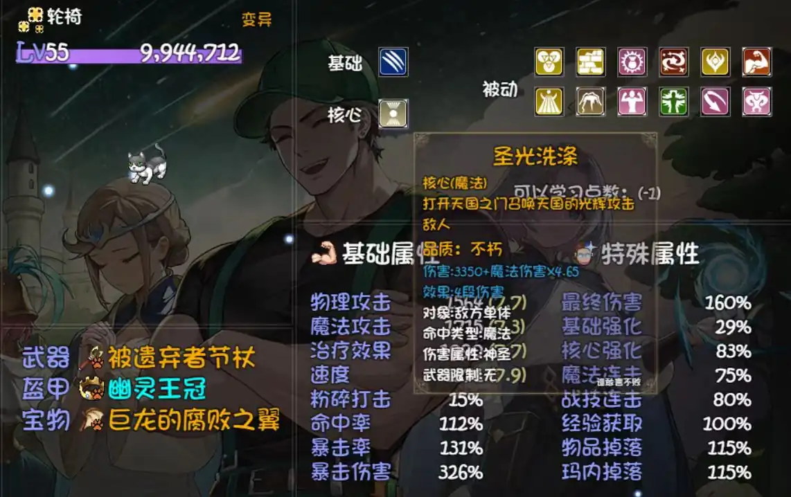 宠物身上的强力被动来自于其他的金光银光宠物,用深渊魔王出的浓缩器,可以将宠物变成被动技能书,这样就可以给自己的主宠物学习上,所以宠物的格子是越多越好,尽量要达到10个以上,目前已经出现了14个被动的神宠。在被动技能中必不可少的就是连击率,还有掉宝率,可以自由挑选搭配。在主动技能方面,小编比较推荐的是圣光洗涤,这也是目前宠物技能中,伤害倍率最高的几个之一了。