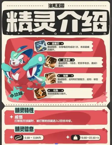 以上就是对洛克王国手游怒目怂猫的介绍了,不仅是一位拥有强力输出与控场能力的精灵,更是《洛克王国》手游中策略性和趣味性兼备的选择之一。无论是面对竞技场中的强敌,还是挑战副本时遇到的困难,怒目怂猫都能够凭借其独特的战斗方式,帮助玩家走出困境,赢得胜利。
