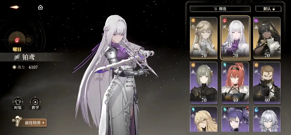 铂鸢也是一个SSR角色,在剧情中她担任银行集团的董事会主席和公爵,普通攻击分为三段,长按普通攻击可以释放重击,并进入统御状态,终结技能会根据当前的焚花层数使剑变得巨大,对敌人造成不同程度的伤害。