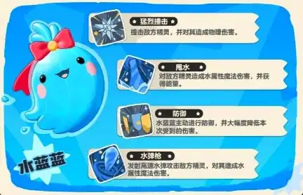 水蓝蓝是《洛克王国》手游中水系的初始宠物,具备气泡术和水之神枪等技能,气泡术能够造成范围伤害,并且有一定几率让敌人陷入混乱状态,实用性很强。而水之神枪则能对单个敌人造成巨大伤害,尤其是在对抗火属性宠物时效果更为显著。玩家在养成水蓝蓝的过程中,可以重点提升它的控制能力和技能连携,让它在战斗中更加灵活多变。水蓝蓝的灵动外表和清新的气息,也非常符合水属性的特点,吸引了许多喜欢水系宠物的玩家。