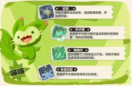 喵喵是洛克王国手游中草属性的初始宠物,拥有多种技能,适合喜欢均衡玩法的玩家。喵喵的种子弹技能可以在攻击的同时恢复自身生命值,这对新手玩家来说非常友好,能够有效提升生存能力。荆棘爪技能则可以对敌人造成多次连续伤害,适合应对高血量的对手。