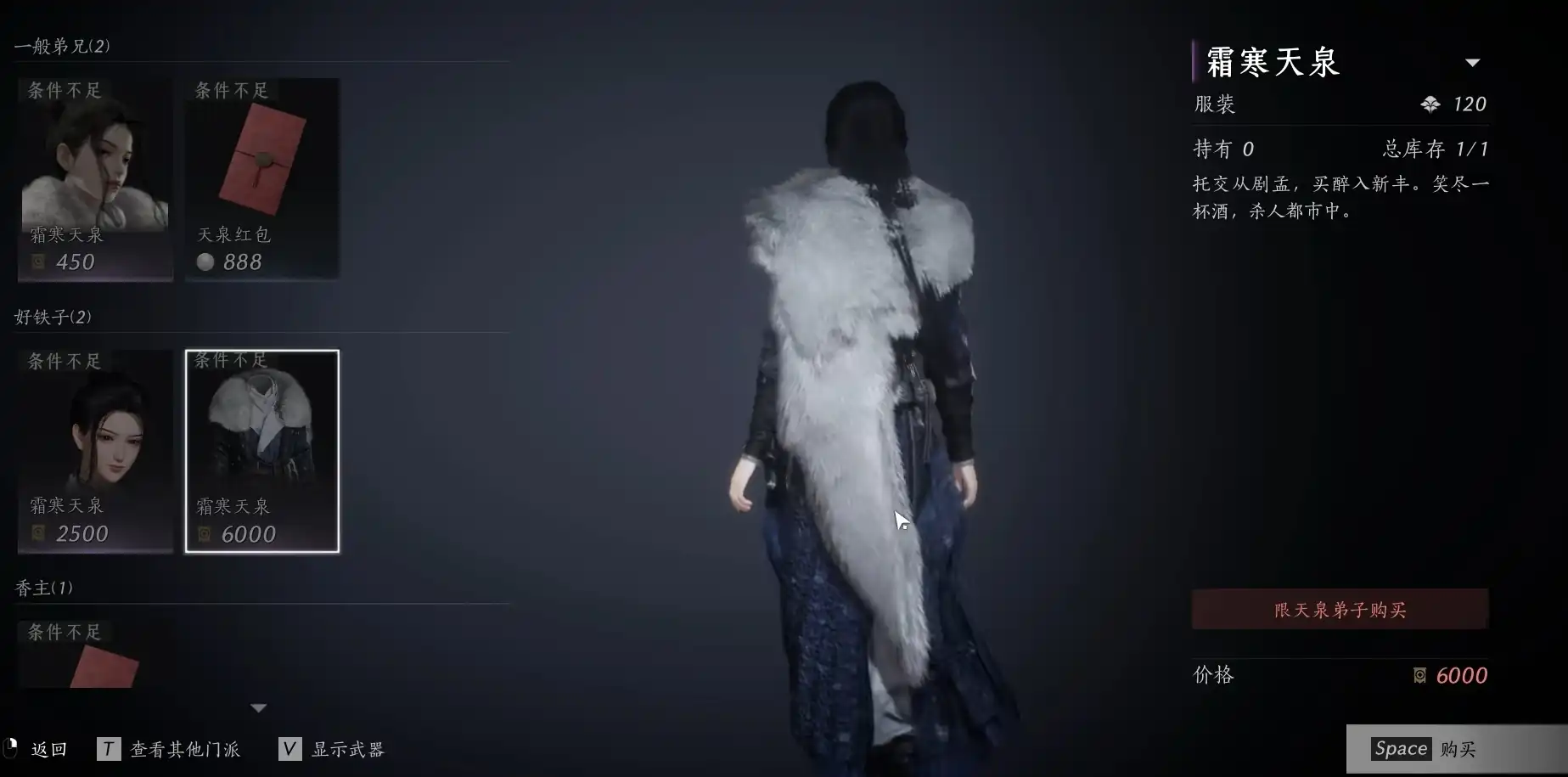 门派时装既加入门派后才有的时装,属于每个门派的限定时装,6000声望一套,可通过肝门派声望换出来,而且在退出门派后依然还会存在。