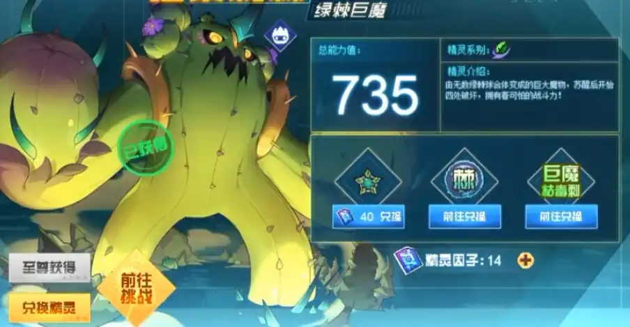 绿棘巨魔这个精灵是由无数绿色的荆棘球融合而成,形成了一个庞大而恐怖的存在,赛尔号巅峰之战绿棘巨魔强度如何其实很多玩家都没有亲手用过,所以大家对驻景挥戈精灵属于是比较陌生的,但是如果要小编推荐的话,这个精灵很多强势的挑战当中都是可以派上场的,当然就看大家怎么用它的特性。