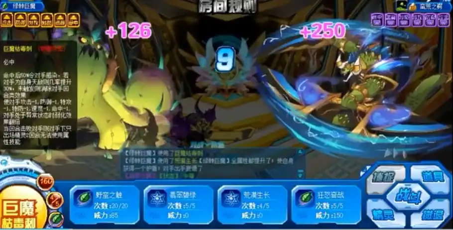 在接下来的两个回合中,每回合都会使对手的先制等级降低2级,狂怒奋战是一种物理攻击技能,具有先制+1的效果,每次使用时威力增加20%,最高可增加至100%,该技能还能吸取对手200点固定体力,每次额外附加50点,最高可达350点,巨魔枯毒刺是第五个技能,同样必中,命中后有50%的几率令对手感染,如果对手是使用者的天敌,这个几率将提升30%。