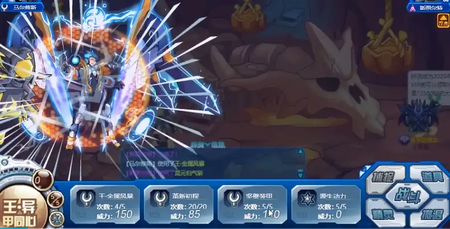 马尔修斯可是游戏中机械系的精灵王,它拥有着独特且强大的三种形态,先来说说它的毁灭形态,当马尔修斯进入毁灭形态时,会有一门神龙巨炮,这门巨炮它能够巧妙地将周围的空气粒子化,然后使这些粒子在对撞加速场中发生剧烈反应,接着是它的防御形态,当马尔修斯切换到这个形态时,它身后会浮现出一面由宇宙中一种未知的陨石块组成的坚壁圆盾。