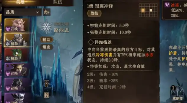 银翼冲锋是一个战斗技能就可以直接冲向威能比较高的敌方,目标会造成冰冻伤害,还会造成300%的攻击伤害。