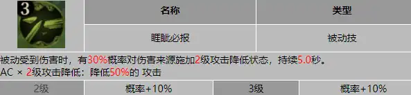 睚眦必报:当厄尔丹被动受到伤害时,有一定的概率降低敌人的护甲值,并且这个效果会持续一定时间,而且在本体受到攻击伤害时,有小概率出发反击伤害,不过这个技能对等级的要求比较高,反击概率是根据等级来定的。
