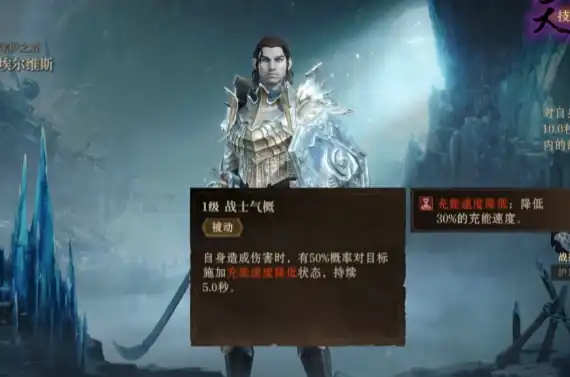 战士气概:埃尔维斯在造成伤害时,有一定概率让敌人的技能充能速度降低,这个技能可以在对战之前起手进行释放,这个技能虽然主要是伤害技能,不仅可以提供控制效果,还有抑制敌人的技能释放时间。