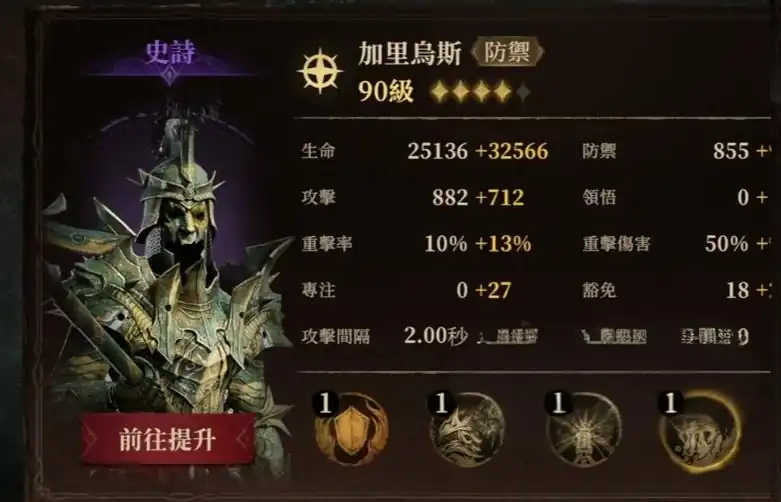 加里乌斯是所有平民玩家都会获得的一个紫色品阶的英雄了,同时他也是一个比较强势的英雄,这是一个定位为血量超厚的坦克英雄。队长技能能给队友提供24%的防御能力,被动技能可以增强自身的防御力,只不过这个防御技能需要在自身血量较低的情况下触发,而且还有着时间的限制。