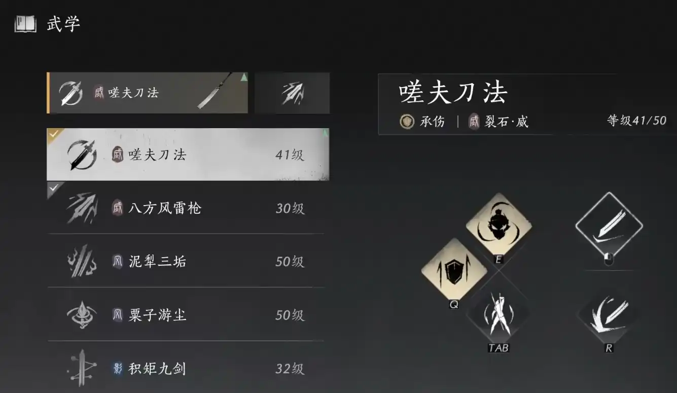 游戏里很稀少的能扛伤的武学,在打boss类敌人时依然能增加玩家们的容错,并且整体的伤害也较为可观,使用时的手感也很棒,最重要的前期就能直接学。