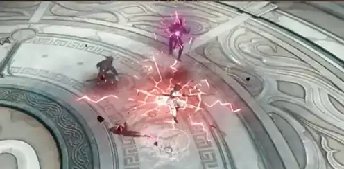 穿血是黎蚩最为标志性的技能之一,能够蓄力冲刺,对命中的目标造成常规伤害,同时在起点留下残影。残影随后会攻击黎蚩最后命中的目标,对沿途的敌人造成常规伤害,并对最后的目标施加【蝶影】效果。在黎蚩的【降神时刻】状态下,穿血技能会被替换为【披靡】。【披靡】不仅保留了穿血的特性,还大大增强了攻击力。黎蚩会留下残影攻击敌人,造成强化伤害,并对第一个命中的敌人施加【蝶影】效果,随后跃起至敌人上方,重重地砸下,再次造成强化伤害。
