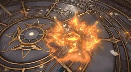 赫菲的第二个技能“爆裂锻造台”是一个范围攻击技能,同时也具备控制效果。赫菲重重地凿击地面,引发连续爆炸,造成常规伤害,随后向后翻身跳跃。在向后翻身的途中,赫菲可以快速衔接旋转跳跃砸,对敌人进行连续攻击。更重要的是,在凿击处会产生一个持续一定时间的【锻造领域】,这个领域可以对敌人造成持续伤害和减速效果,从而为赫菲和队友提供更好的战斗环境。