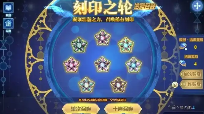 对于钻石充足的玩家来说,可以考虑每天花费200钻石进行一次十连购买,这样每天都能够额外获得一个浩瀚星核,SS级刻印均属于九天系列,比如九霄之钟、九霄之灵等,这些刻印在同类型刻印中其实是可以替代之前的一些效果不错的刻印的,且就从数值上面看的话,跟后期大家升级过后的刻印效果相比,在数值上面也没有差到哪里去,就是获取比较难。