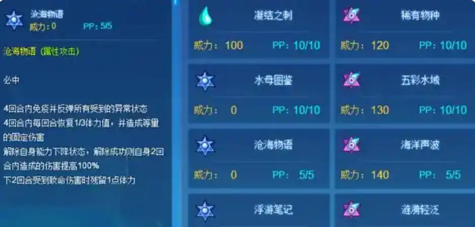 然而对于一个没有减伤能力的入门级精灵来说,先3技能本应是其最核心的加分项,沧海物语则是玖莉娜的核心属性技能,它能够在4回合内提供弹控和续航效果,尤其擅长对抗粉色伤害,通过解除弱化状态,它还能为接下来的2回合增加红色伤害的输出,141点特攻加上150点本攻,这样的攻击力确实非常高,当高体力的玖莉娜拿到优势时,她的先手攻击成功率会翻倍,并且基础100%的2回合增伤效果更是不错。