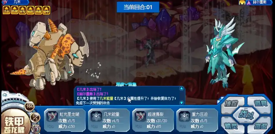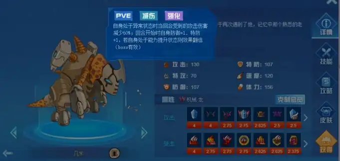 虹光星龙破是另一个必备的技能之一,这个技能必中并且当几米处于能力下降状态时,它能够提供先制+3的优势,通过反转自身能力的下降状态,几米可以在战斗中获得更大的优势,如果反转成功对手将会陷入瘫痪状态,最后要介绍的是铁甲苍龙啸这个第五技能这,个技能也是必中的它可以消除对手的回合类效果,如果成功消除,几米将恢复全部体力。