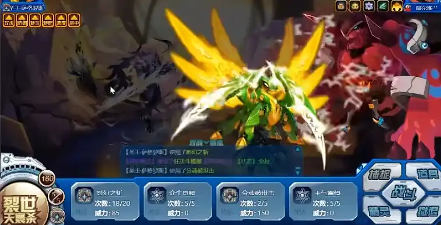 首先大家在打的时候先注意在第一个回合中,先派出两只具有四倍攻击力和先制攻击的精灵进行攻击,然后再用其他精灵进行补刀,第二个回合开始时,使用银翼极光技能将对手击倒,并让其自爆,接着利用影蝠传承强化自身的能力,并发动高威力的王雷攻击,虽然不知道这样的伤害是否会翻倍,但即使没有翻倍也足够击败对手了。