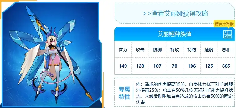 以上就是赛尔号巅峰之战艾丽娅怎么样的相关介绍啦,其实艾丽娅目前不属于一个有强力效果的精灵,但是这个精灵后期是可以进行进化的,进化后的她强度就会上来了,所以还是推荐大家去尝试一下的哦。