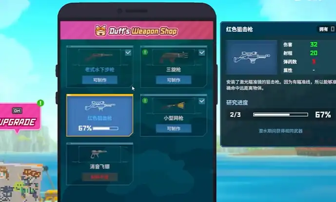 当游戏推进到第二章并击败大王鱿鱼后,武器升级功能正式解锁。玩家需要前往武器商店,在这里可以查看当前的武器状态以及可升级的选项。每把武器都有多个升级分支,例如提升攻击力、弹药容量或射击速度。这种多样化的选择使得枪械的养成方向更加灵活,可以根据玩家的战斗风格与战术需求进行调整。