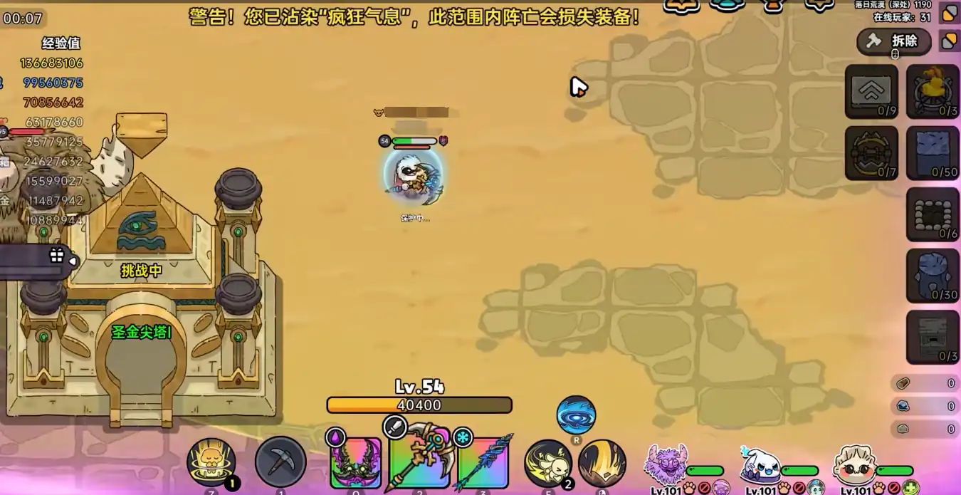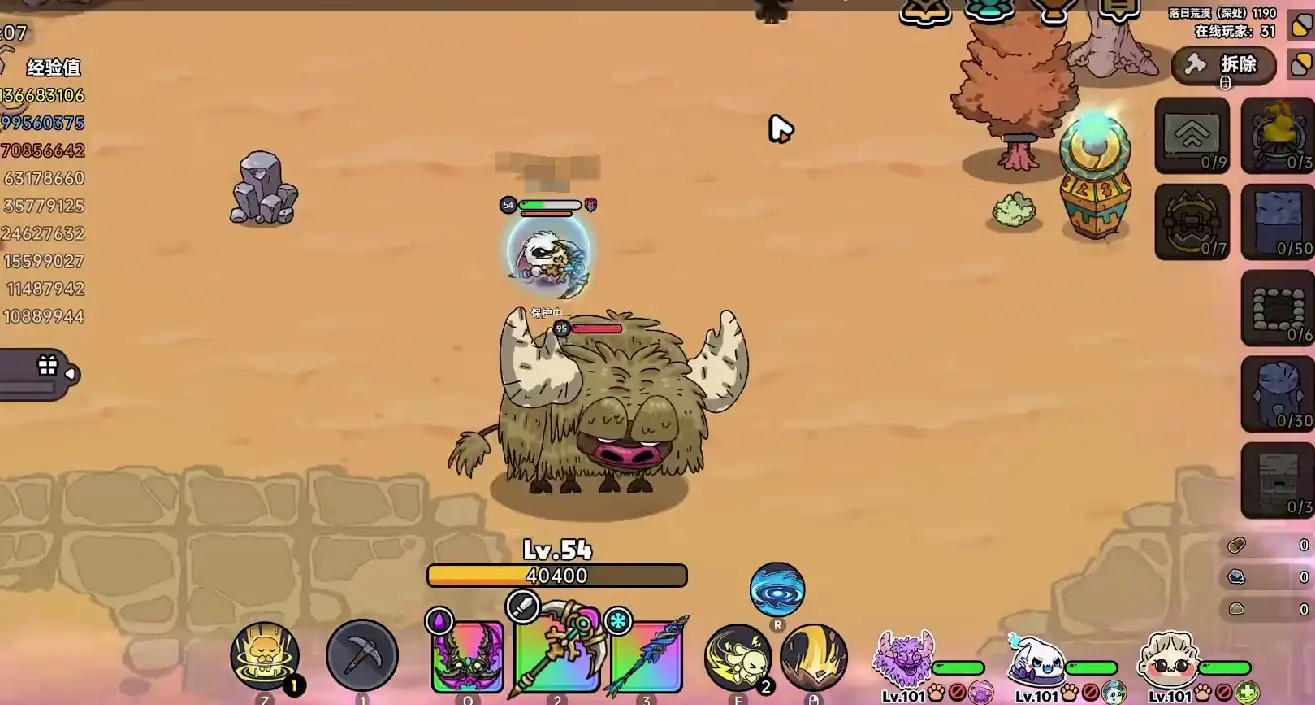 游戏当中的沙盒玩法属于大世界探索玩法,在大世界之中实际上会存在有许多的世界boss,例如密林区域内,会刷新密林怪物,这一类的怪物一般会根据该地区的等级进行调整,如若玩家等级只达到了54级,直接挑战沙漠区域即可。