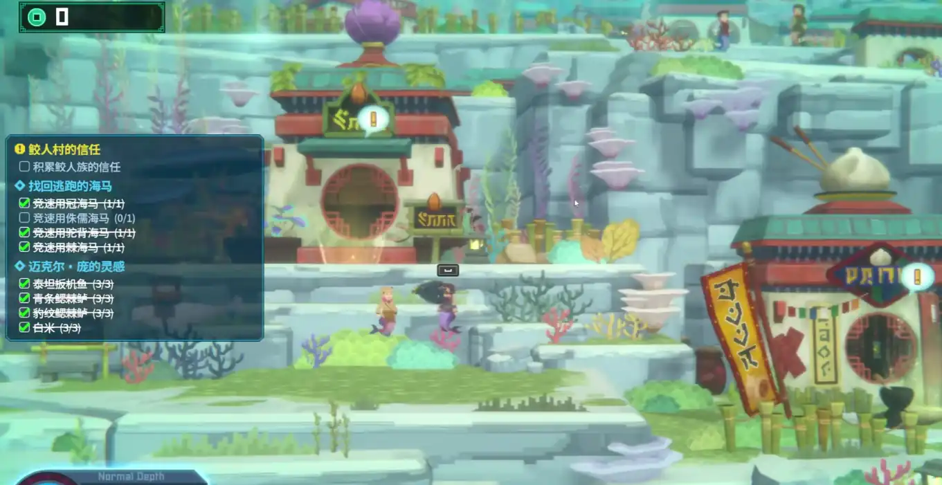 这四只海马的移动速度都非常快,建议玩家在携带捕虫网的同时,需要携带麻醉枪,在命中了海马之后,立刻进行补充网的捕捉即可,在完成了找回逃跑的海马这一个任务后,玩家即可获取鲛人村的信任。