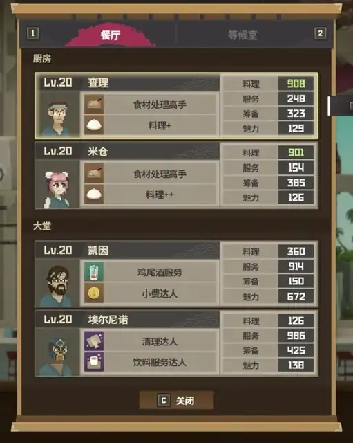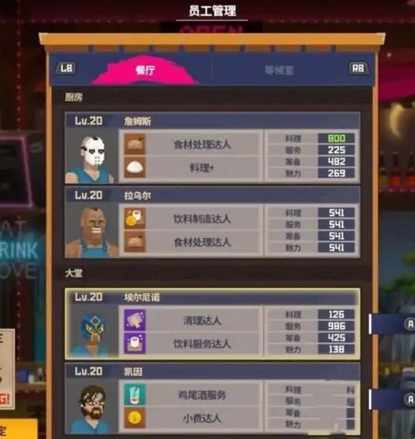 在员工搭配的过程中,玩家需要根据每位员工的属性与能力值,合理安排岗位分工。对于料理值较高的员工,应优先安排在核心厨师岗位,而擅长服务或后勤的员工则适合辅助位置。此外,玩家还可以通过培训或任务奖励提升员工能力,进一步优化团队配置。