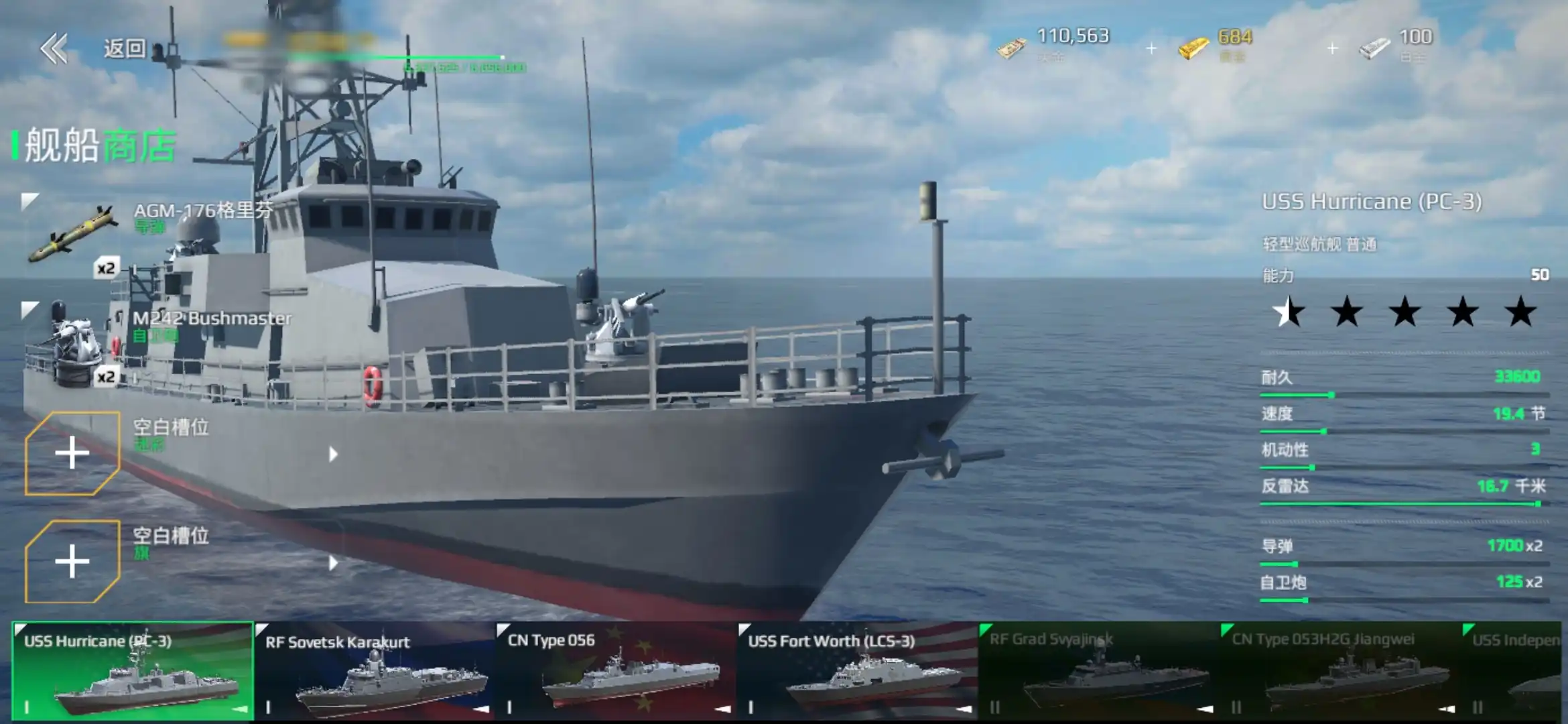 首先第一款就是PC的小型巡航键,这款战舰非常适合新手入门来选择,他拥有两个导弹的发射装置,并且后续可以将这个格里芬的导弹升级成为圆形的设计,口径的导弹,档口的升级有利于提升整体的战斗能力,除此之外,还有056的护型战舰,也是非常不错的选择,对于新手玩家来说,整体的武器配置都是非常全面的,所以在作战的过程中,也会拥有更多的优势,可以将火炮导弹,还有直升机,全部结合在一起。