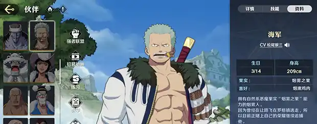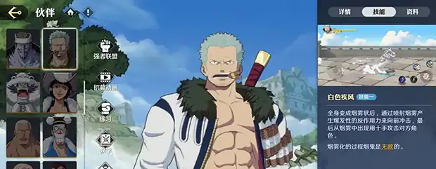 航海王壮志雄心汇集了一大批实力强劲的角色。下面小编分享一下航海王壮志雄心斯摩格技能。斯摩格作为勇气风格,它强度很高,它拥有无敌模式。在动漫中非常出彩的路飞、佐罗、奈美、甚平等。玩家们多多收集角色,才能组建一支厉害的队伍。在一众角色中,斯摩格人气高,技能独特。