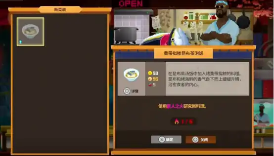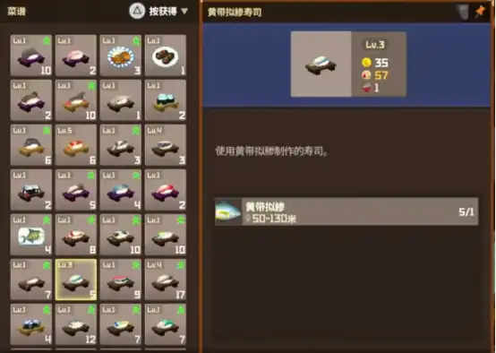 捕捉到带拟鲹之后可以带回餐馆,制作真纪想吃的食物黄带拟鲹茶泡饭,这个食物除了需要三条黄带拟鲹鱼之外还要一张昆布以及一份酱油,这样才能够将此食物制作完成。昆布与海里的海带比较相似,海洋中大量存在,每当遇到直接割下来就可使用。酱油可通过开箱子或者派遣用户的方式获得。