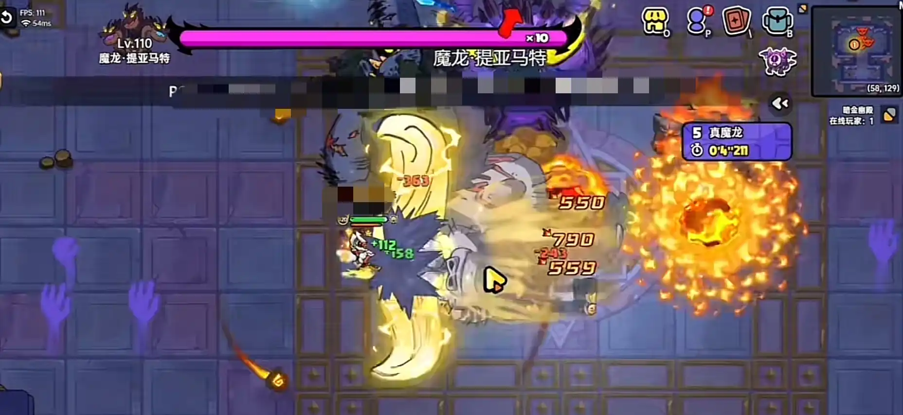 武器携带雷弓,如果有α散射强化就更好,副武器携带魔龙刀以及浮游。进入之后优先靠左上角位置走,贴脸打牛头人释放雷弓散射技能,基本上能秒掉两个,再切换成魔龙刀释放陨石另外两个也就被清空了,注意浮游调整的不要太大,小一点可以转的更快,造成多次伤害,接着就是处理有三个头的魔龙。