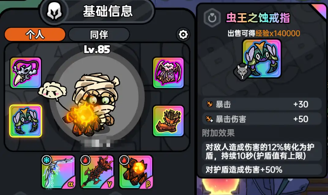 潮汐套+骨链+灼烧戒指,灼烧戒指的作用就是配合蜉蝣去快速清理掉冥王所释放的小飞镖,装备携带虫刀来躲避冥王的劈砍,没有章鱼书可以旋刃来替代。依旧是门外起镰刀,进去之后就是不断的普攻使用回旋镖打就行,注意小镰刀出现的时候尽量先清理一变,以防交叉移动造成致命伤害;冥王在还剩两管血左右就要开始停止攻击恢复一下体力,等待回旋镖的技能,这样才能保证在指定时间内能把镰刀破坏掉。