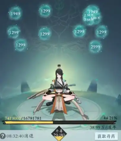 说得通俗一点就是服用丹药,这里也引用出了一个丹毒的概念。当你服用的丹药达到一定数量之后,就再也不能服用了。所以这里优先服用金色或者紫色的丹药,这样就能尽量让你自己更快的速度突破至化神期,从而成为一个能够斩妖伏魔的大侠。因为修为越高的话,刷图的效率就越高。