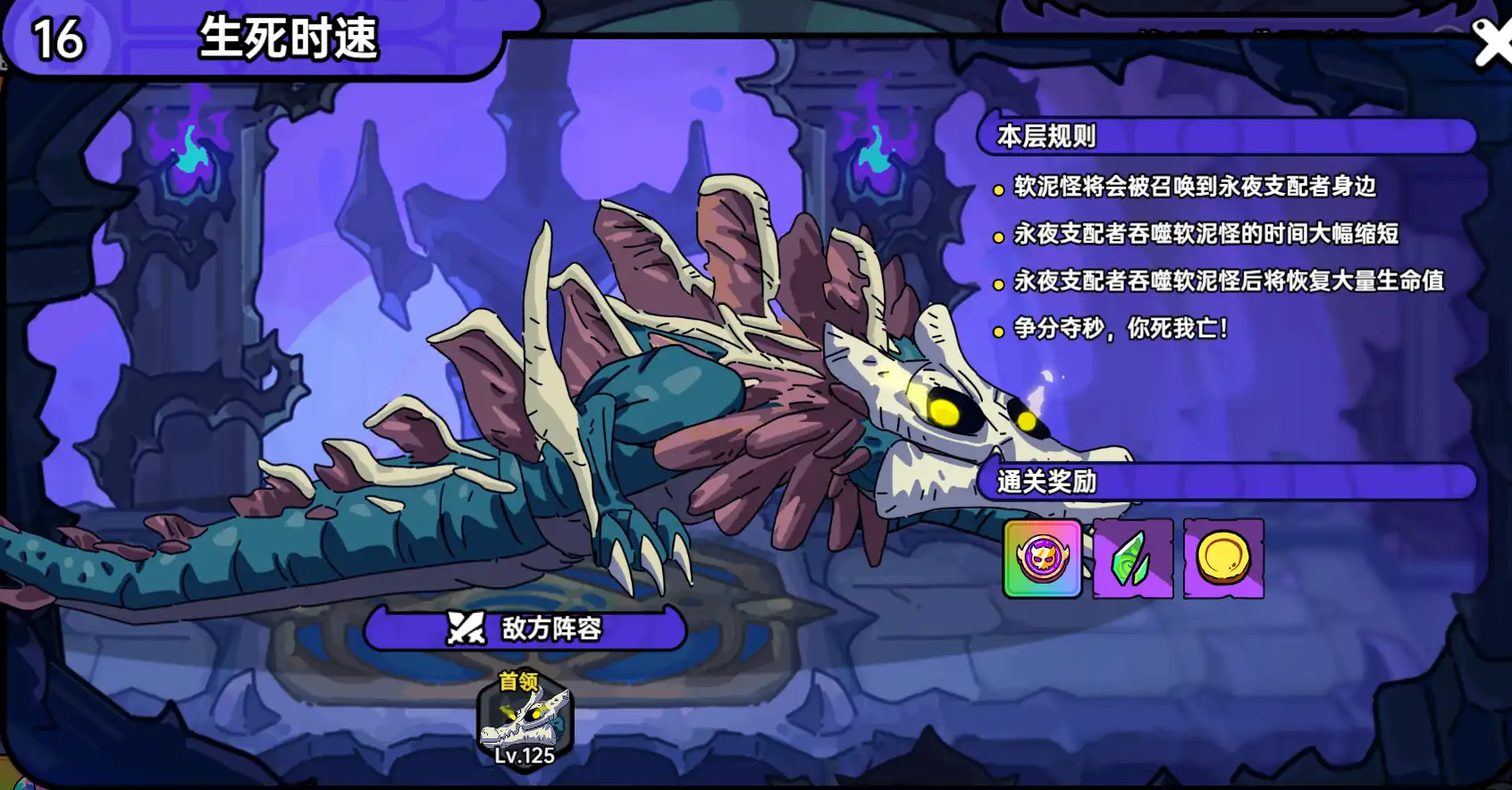 暗金幽殿第16关名为生死时速,这一关要求玩家消灭125级的骨龙,而和暗夜森林中的不同,其吞噬软泥怪的时间会大幅度的缩短,也就是需要一套爆发伤害来消灭软泥怪,很多玩家最难通关的地点在于不知道如何的搭配装备取同时的攻击古骨龙和他身边的软泥怪,所以才会导致超时无法通过,接下来给大家分享一套保姆攻略。