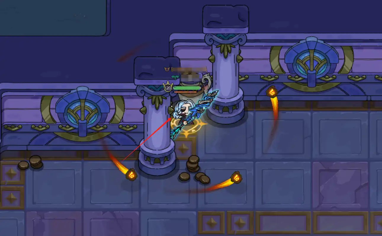 开始之后依旧是门外召唤出来冥王镰刀起被动,进入之后直接点亮激活骨龙然后向右上角拉,等他上来之后走到两个砖之间的缝隙中,这个它在释放半瓶劈砍的时候是绝对达不到的,用战士释放格挡全程不用动等待大史莱姆的到来即可,如果小软泥怪比较活跃跑出去了可以可以停止自动攻击,比较好追而且血量也非常低。