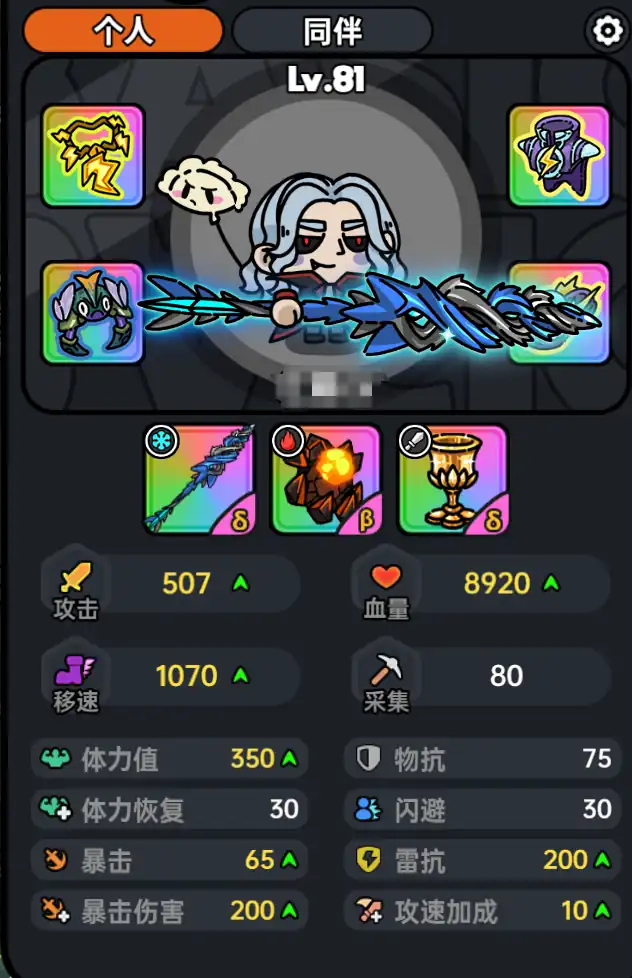 四件装备的话推荐携带雷龙套,雷鸣项链以及虫戒指,雷鸣项链的作用就是提供雷属性造成的额外伤害,武器的话可以携带β风枪,可以提升攻速的一个效果,另外两个武器携带暴击,浮游以及圣杯,风枪的作用使攻速更快让我们更好的控制大软泥怪。