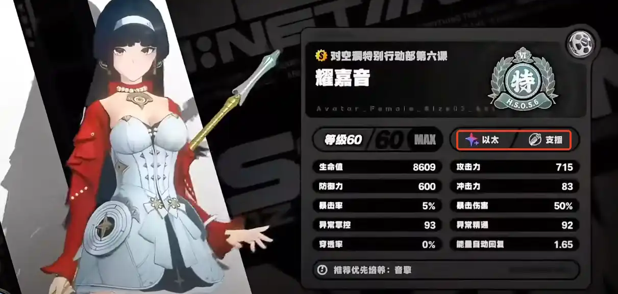 以上就是关关于绝区零耀嘉音属性和技能的详细介绍,作为一名百搭型支援角色,能够轻松融入各种队伍并替代其他辅助角色,无论是特定组合还是自由搭配,她都能为队伍提供极高的价值。可以选择星见雅、耀嘉音与柳或柏妮思的组合,也可以是莱特、耀嘉音与伊芙琳的搭配,充分发挥耀嘉音的增益和支援作用。
