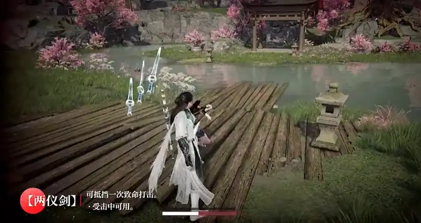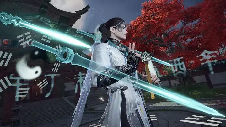 技能1”两仪剑”,他会将飞剑召唤出来持续跟随自己,召唤的数量是三把,这三把飞剑可维持60秒,将飞剑发射出去,击中的如果是场景,就会打造一个屏障,该屏障可抵挡远距离攻击,该技能即使在受击时也能使用,屏障能维持8秒,而且同时会回复附近队友的体力,两仪剑存在时间内,他受到致命打击时会触发天罡护体。