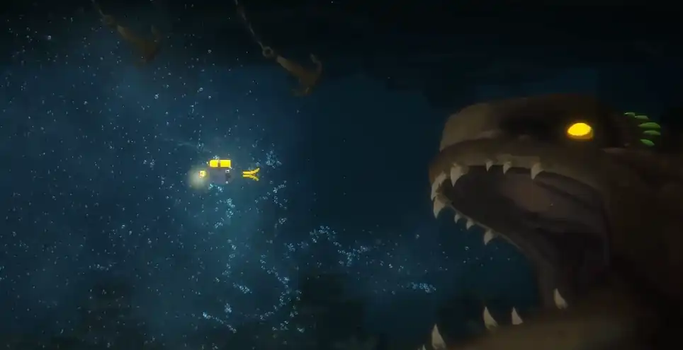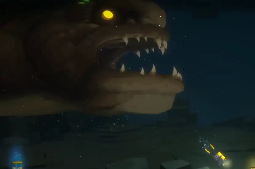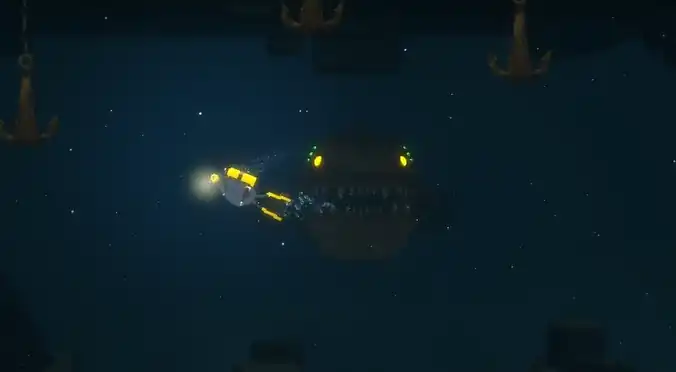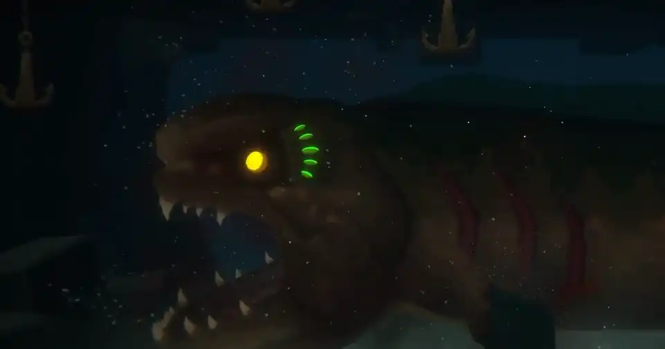 当你首次进入深海洞穴时,狼鳗会先用“暴风吸入”试图将你吸入口中。这招看起来很吓人,但其实很好躲。首先,你可以抓住附近的铁锚,只要按下对应的互动键,吸力对你就没用了。要是没来得及抓铁锚,也可以快速朝吸力相反的方向狂游,避开这次攻击。这一关卡是狼鳗的见面礼,不必太紧张。