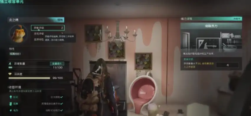 抓起来的时候可能不是那么苦难,但是想要玩家们给他提供一个比较舒适的环境,比如福红光照射,周围要摆放一些玩具或者是可以消耗十万电力的相关设备,只有这样才能确保它在游戏当中发挥最大的效果。