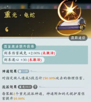 带齐了以后可以激活四五雷羁绊,这羁绊可以按照装备五雷技能的数量增加伤害,伤害总增加量为40%,这伤害可以让其的aoe输出伤害变的和单体输出一样高,此外还需要搭配两个重光系列的剑系技能,这系列的剑系技能有增伤效果,可以进一步提高雷法伤害。